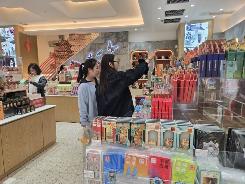 晉禮內(nèi),游客正在挑選文創(chuàng)產(chǎn)品。人民網(wǎng) 武笑攝