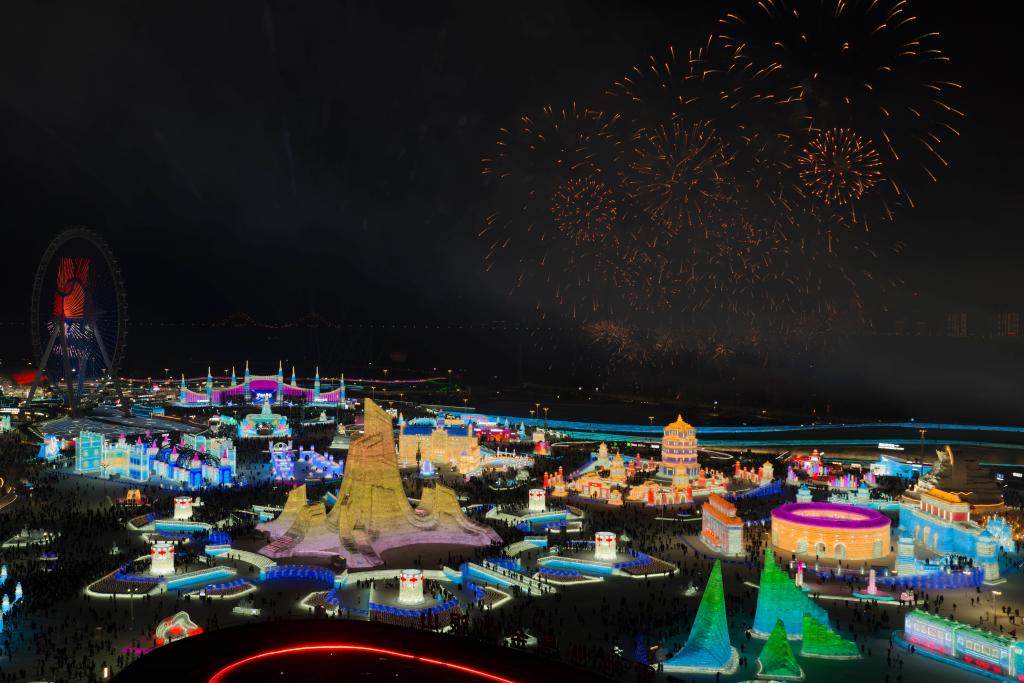 1月5日17時(shí)許,松花江北岸,夜空被璀璨的煙火點(diǎn)亮。在零下十幾攝氏度的嚴(yán)寒中,第42屆中國(guó)·哈爾濱國(guó)際冰雪節(jié)在哈爾濱冰雪大世界啟幕!