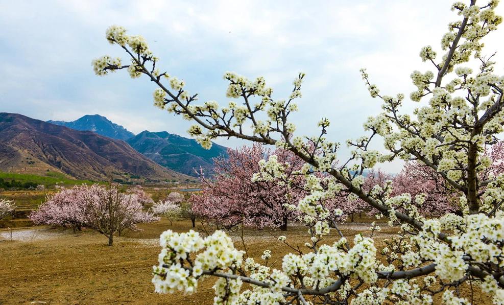 沿著長(zhǎng)城一號(hào)旅游公路向西而行,一片片的杏樹接踵而來(lái),滿樹的杏花你挨著我,我擠著你,嬌艷欲滴,微風(fēng)拂過(guò),清香味撲鼻而來(lái)。盛開的杏花一大片一大片的,粉嘟嘟的,花苞里微微泛著點(diǎn)紅,像害羞的少女嬌嫩嫩的,李峪的杏花開了。