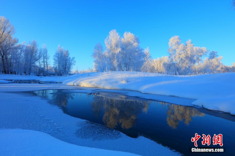 連日來,新疆北部持續(xù)低溫,哈巴河縣受寒冷天氣的影響,出現(xiàn)了大面積霜掛美景。一棵棵白樺樹被妝點(diǎn)成銀白色,晶瑩剔透,潔白無瑕,置身其中,如同進(jìn)入夢(mèng)幻世界一般。圖為清晨的哈巴河縣銀裝素裹,云霧繚繞。 劉是何 攝