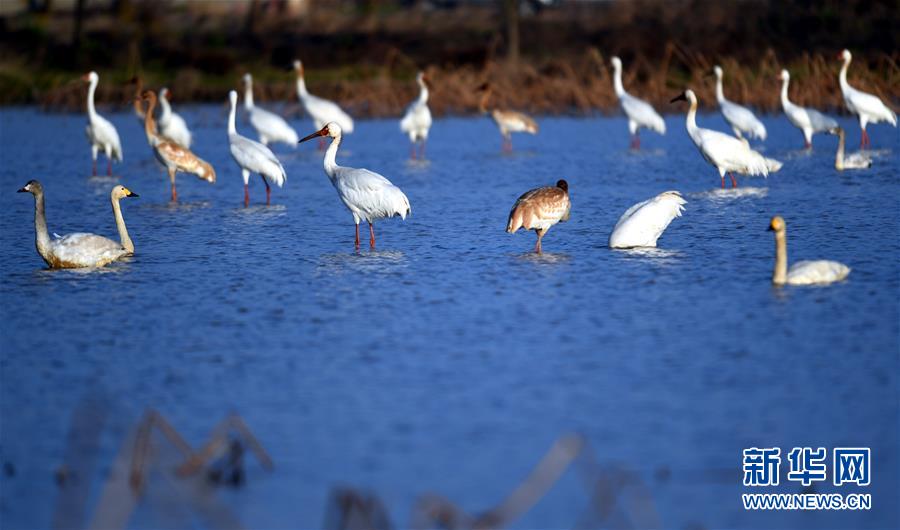 受新一輪北方冷空氣南下影響,江西鄱陽湖越冬候鳥數量激增,一年中最佳的觀鳥時節(jié)到來。江西鄱陽湖國家級自然保護區(qū)管理局近日監(jiān)測顯示,飛抵保護區(qū)的候鳥總數達到16萬只,主要包括大雁、小天鵝、白鶴、東方白鸛等。