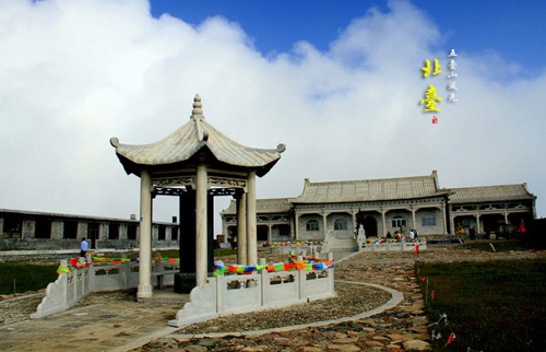 北臺稱為葉斗峰,海拔3058米,是五臺山的最高峰,也是華北的最高峰,素有華北屋脊之稱?!肚鍥錾街尽吩疲骸捌湎卵鲆暎瑤p摩斗杓,故以為名”。說的是北斗七星就像一把勺子,北臺頂太高了,就像和北斗的勺把子連接住了。