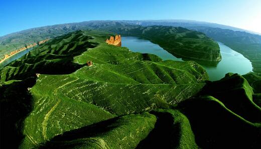 老牛灣是一座三面臨水的半島,在緊臨黃河的山崖上,有一座高達(dá)23米的望河樓,600年間雄踞高崖、俯視黃河,閱盡古今滄桑。如今隨著萬家寨水利樞紐工程勝利蓄水,滔滔黃河從萬家寨到老牛灣形成了一條長達(dá)70公里的蔚藍(lán)飄帶,長城到老牛灣之后,繼續(xù)順河南下,經(jīng)萬家寨、關(guān)河口至河曲樓子營而止,逶迤相伴達(dá)百余里。