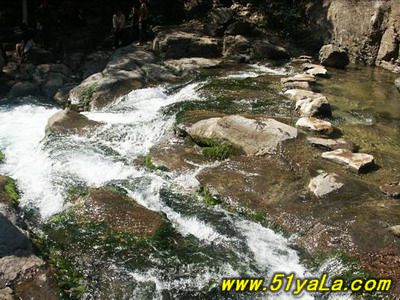過了洗臉盆便是水簾洞。一股兩米寬的泉水從北峽溝的洞中涌出,緩流四五十米后順山崖直壁而下,一派“飛流直下三千尺”的磅礴氣勢(shì)。其后一深洞,嘩嘩瀑布落就半崖伸出的青石板上,打著飛快的漩渦卷人洞內(nèi),而后又從洞底端漏口處噴出,驚濤駭浪之聲震山蕩谷。泉水正是莽河之源。這個(gè)洞叫“出水洞”,一年四季泉水奔流不息。泉水流經(jīng)之處,有一個(gè)懸崖,形成瀑布,這就是莽河著名的風(fēng)景區(qū)“水簾洞”,因?yàn)閼已轮虚g有個(gè)洞,像是在瀑布中間有個(gè)巨莽的腦袋,蟒口大張,吸水噴霧,戲耍流泉。另有一塊巨石,像是一只烏龜從甲殼底下探出了頭,似乎在祈求幫助。嘩嘩瀑布落就半崖伸出的青石板上,打著飛快的漩渦卷人洞內(nèi),而后又從洞底端漏口處噴出,驚濤駭浪之聲震山蕩谷。