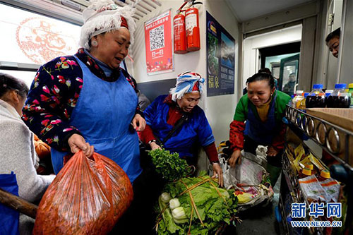 1月27日,乘客在5639次列車上賣菜。 由貴州玉屏開往貴陽的5639次列車是輛綠皮“慢火車”。沿途群眾每天挑著籮筐上車,將自家出產(chǎn)的農(nóng)作物帶到貴陽、凱里等地販賣,再坐著火車把生產(chǎn)資料和日用品帶回家。時間一長,不少乘客直接在列車上買賣貨物。春節(jié)將至,蔬菜水果等農(nóng)產(chǎn)品交易較往日更加紅火,列車上的“年貨市場”洋溢著濃濃年味。 新華社發(fā)(許毅 攝)