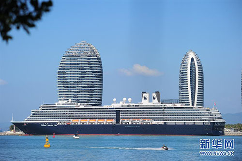 當(dāng)日,荷美郵輪公司旗下的“威斯特丹號”抵達(dá)三亞,成為今年首艘到訪三亞的國際郵輪?!巴固氐ぬ枴北敬螆?zhí)行的是越南下龍灣—三亞—香港航線,搭載近1900名來自美國、澳大利亞、英國、荷蘭、日本、韓國等國家和地區(qū)的境外游客,前來感受三亞魅力。