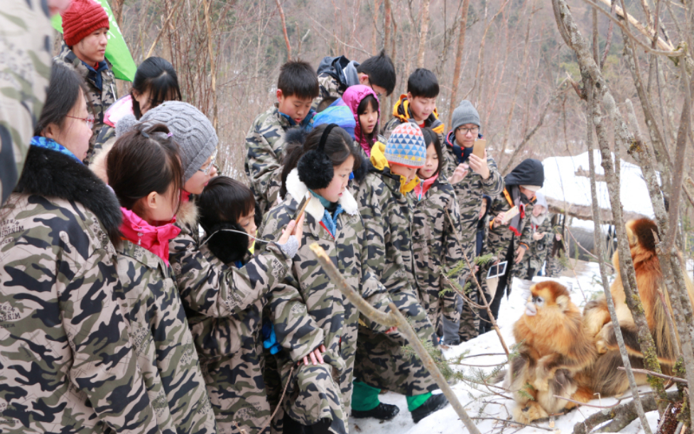 學(xué)生研學(xué)走進(jìn)神農(nóng)架?chē)?guó)家公園大龍?zhí)督鸾z猴基地(神農(nóng)架?chē)?guó)家公園管理局供圖)?