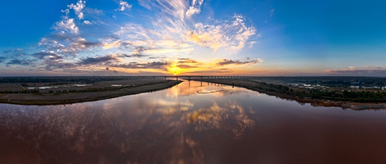??初冬的黃河, ??依然如五彩斑斕的畫, ??似柔情百轉的詩, ??勁風吹,楊柳搖,黃葉紛飛絢影飄。 ??河岸的那一抹黃,承載了季節(jié)的神韻。