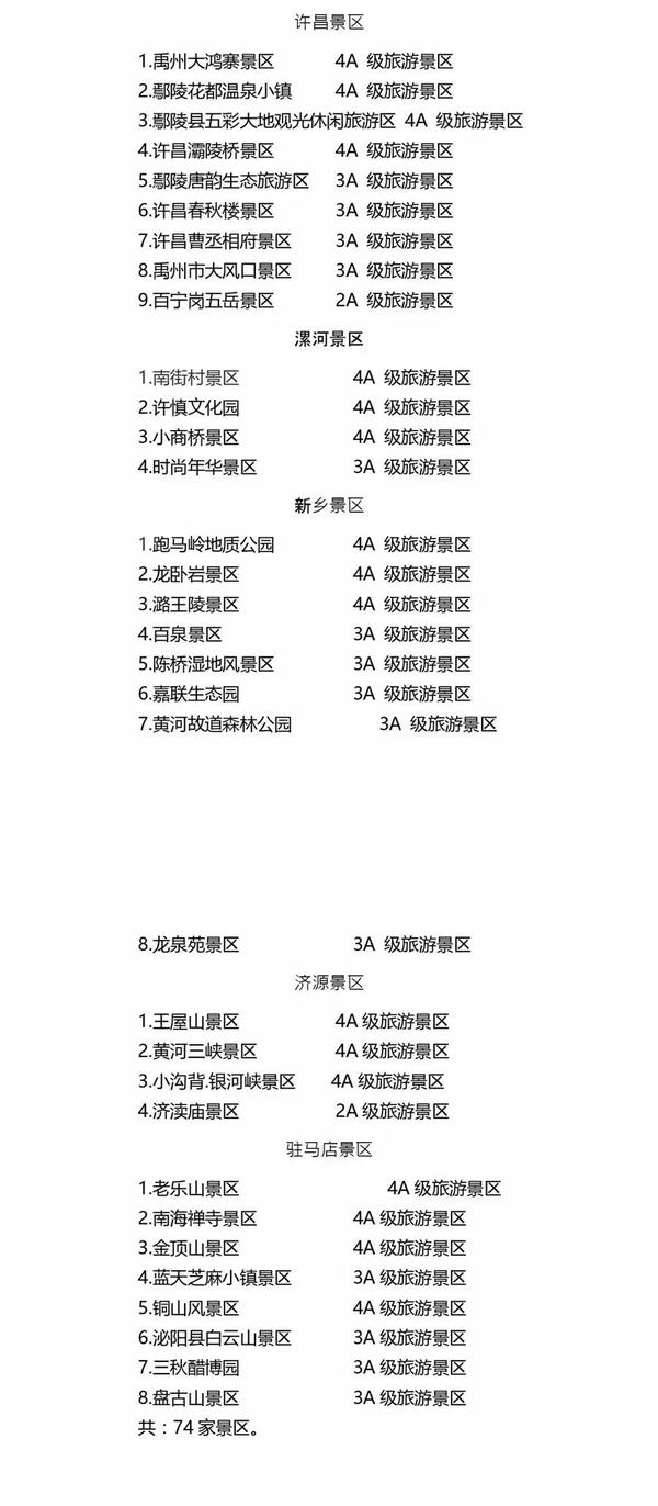 其中,鄭州的年票景區(qū)“十一”假期期間暫停使用,中原福塔景區(qū)在7個法定節(jié)假日期間暫停使用。平頂山、新鄉(xiāng)、焦作、許昌、濟源和駐馬店的年票景區(qū)在“五一”、“十一”和“春節(jié)”假期,年票暫停使用。如遇景區(qū)舉辦重大節(jié)慶活動,為保障旅游安全,避免發(fā)生旅游安全事故,活動開始后、年票暫停使用時間不應超過15天。未注明年票暫停使用時間的城市(漯河市),年票景區(qū)節(jié)假日期間,年票正常使用。