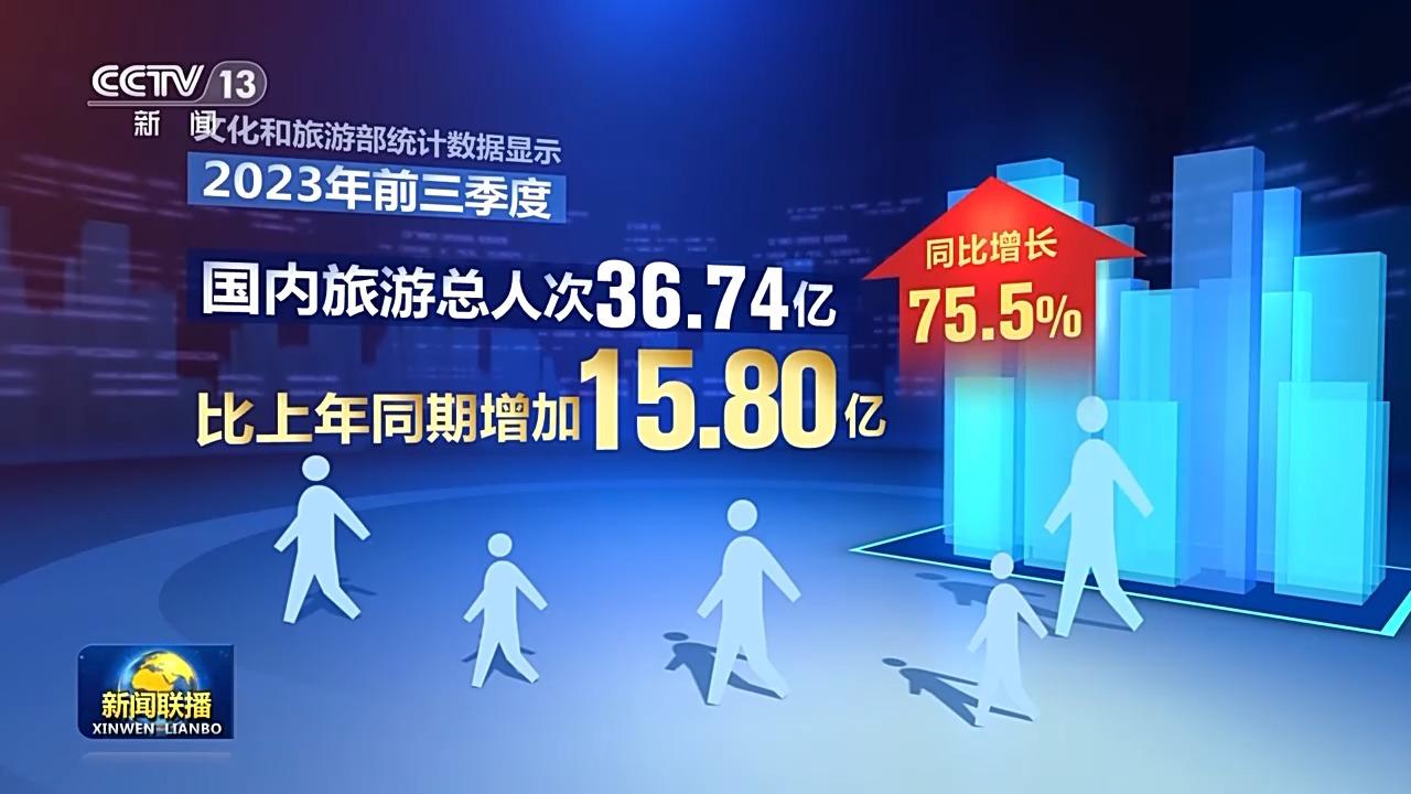 文化和旅游部統(tǒng)計(jì)數(shù)據(jù)顯示,2023年前三季度,國內(nèi)旅游總?cè)舜?6.74億,比上年同期增加15.80億,同比增長75.5%。2023年前三季度,居民國內(nèi)出游總花費(fèi)3.69萬億元,比上年增加1.97萬億元,增長114.4%。預(yù)計(jì)在今年12月至明年春節(jié)期間,冰雪游、出入境旅游等消費(fèi)將迎來新高。