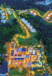 初到度假區(qū)已是深夜,順著車燈向前,一條鄉(xiāng)間公路蜿蜒伸展,不遠處燈火通明的半山腰,便是黃山關(guān)麓國際旅游度假區(qū)。