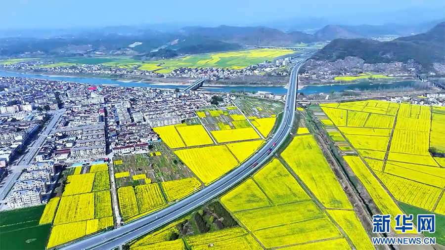 近日,安徽省池州市貴池區(qū)的油菜花盛開,金黃的花海鋪展在沃野田園,與民居、公路、車流相映成趣,構(gòu)成一幅生機勃勃的鄉(xiāng)村圖景。
