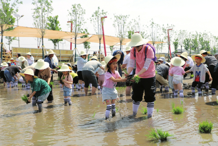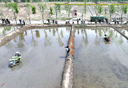 5月28日,太原市晉源區(qū)晉祠水稻插秧節(jié)在稻田公園舉行?;顒?dòng)現(xiàn)場(chǎng),機(jī)器轟鳴、水波蕩漾,自動(dòng)化插秧機(jī)勻速前進(jìn),水田里留下一簇簇新綠。卷褲腳、戴草帽、踏稻田、插秧苗、踩泥巴、捉魚(yú)蝦……一群群研學(xué)的孩子分批下田,感受手工插秧的樂(lè)趣,細(xì)嗅農(nóng)耕勞作的氣息。田埂上圍觀群眾的加油聲、喝彩聲不絕于耳,現(xiàn)場(chǎng)一片熱火朝天。