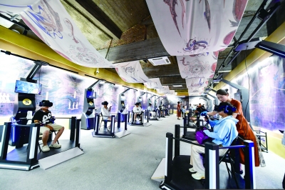 7月22日,游客線下體驗“尋境敦煌——數(shù)字敦煌沉浸展”。 “尋境敦煌”綜合運用虛擬現(xiàn)實、三維建模、游戲引擎的物理渲染和全局動態(tài)光照等新技術(shù),高精度立體還原了莫高窟第285窟。游客戴上VR眼鏡,不僅可以零距離觀賞壁畫、360度自由探索洞窟細(xì)節(jié),還能“飛升”到窟頂,身臨其境參與壁畫故事情節(jié),沉浸式感受敦煌文化的魅力。 新華社記者 郎兵兵/攝