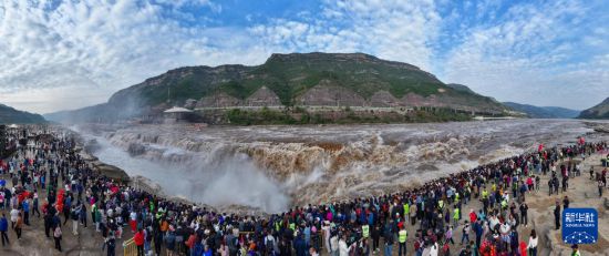 國(guó)慶長(zhǎng)假期間,位于山西省吉縣和陜西省宜川縣交界處的黃河壺口瀑布迎來眾多游客,觀賞“黃河之水天上來”的壯觀景象。