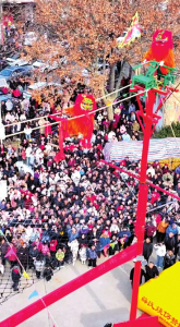 春節(jié)期間,永濟(jì)市虞鄉(xiāng)鎮(zhèn)土樂村村民自發(fā)組織的民間藝術(shù)團(tuán),向省內(nèi)外游客表演省級(jí)非遺項(xiàng)目——永濟(jì)空中飛獅。