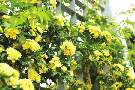 黃木香是薔薇科薔薇屬植物,攀緣小灌木,高度可達(dá)6米?;ㄐ⌒停喽涑蓚阈位ㄐ?,花重瓣黃色。黃木香的生長(zhǎng)速度非常快,輕輕松松就可以長(zhǎng)成一面花墻,它的枝條柔軟,像一個(gè)個(gè)藤蔓精靈,在園藝師的奇思妙想下,或成為墻壁精美的外衫,或可將一個(gè)普通的架子攀援成蜿蜒