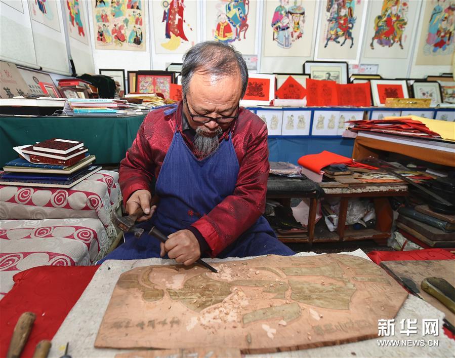 春節(jié)期間,山西省新絳縣的絳州木版年畫傳承人吳百鎖忙得不可開交,來購買“吉祥如意”“雄雞一唱天下白”等主題年畫的顧客絡(luò)繹不絕。山西省非物質(zhì)文化遺產(chǎn)絳州木版年畫發(fā)端于宋金,興盛于明清,從選料到雕刻再到上色都非常講究,一幅年畫的制作需要七八道精細工序。隨著時代的變遷,目前已鮮有專職雕刻、印制年畫的匠人。擁有嫻熟雕刻技藝的吳百鎖在傳承傳統(tǒng)工藝的基礎(chǔ)上,積極創(chuàng)作現(xiàn)代題材的作品,希望通過自己的創(chuàng)新讓更多少年兒童了解并愛上木版年畫,讓這門幾乎失傳的技藝綻放新的光彩。新華社記者 曹陽 攝