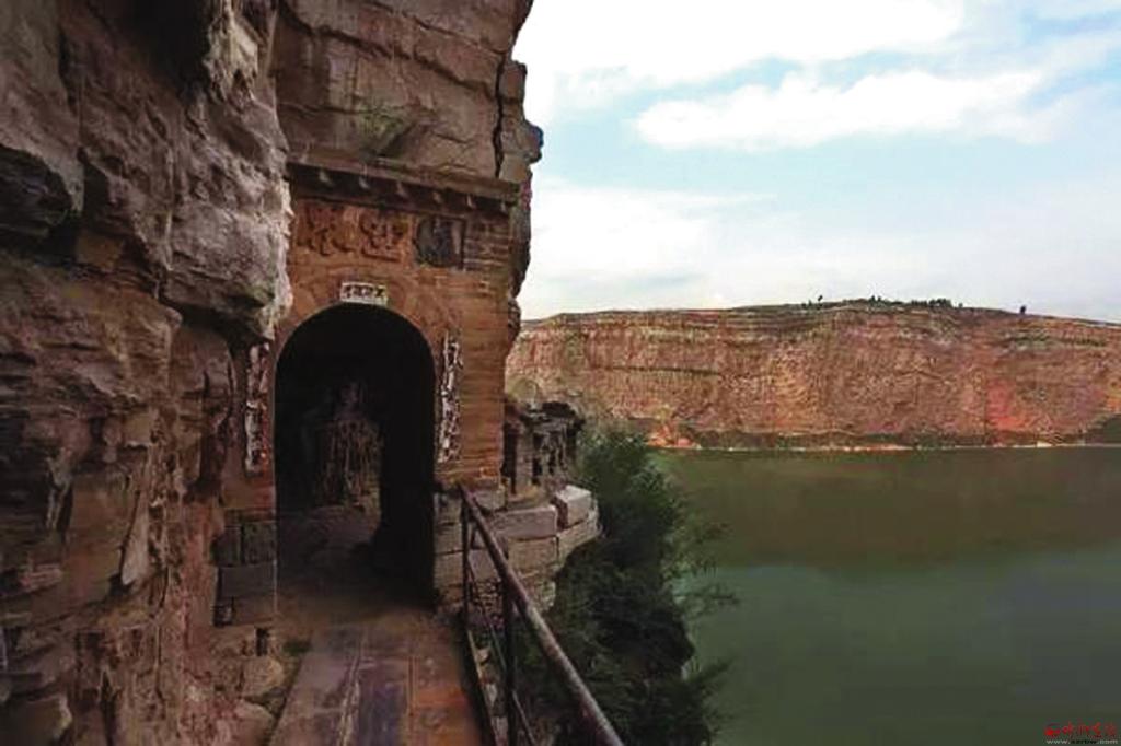 沿著石壁繼續(xù)下行十多米,眼前出現(xiàn)一條羊腸小道,小道中途還有座獨(dú)木橋,橋的一端建有石門(mén),門(mén)上刻“懸空界”三字,穿過(guò)石門(mén)便是聞名天下的彌佛洞。彌佛洞建在黃河峽谷絕壁上的一個(gè)天然石窟之中,洞內(nèi)怪石倒垂,犬牙交錯(cuò),人至其中如入虎口。從石洞后壁登23級(jí)石階,又有一石窟,高約兩丈,內(nèi)供佛像一尊。彌佛洞憑借雄渾壯觀的自然景觀給人們留下深刻印象,中國(guó)當(dāng)代著名畫(huà)家吳冠中先生觀后稱(chēng)其為“黃河上的一大奇跡景觀”。