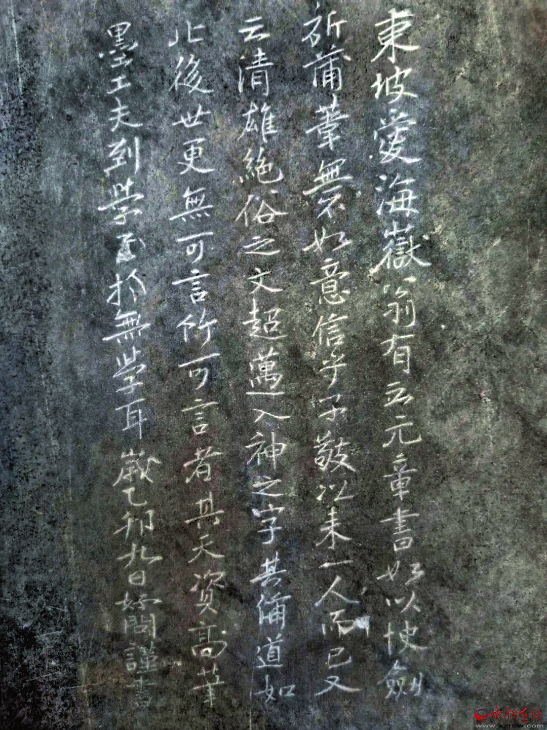 凡拜謁過野史亭的人,都曾看到過亭壁上所嵌的遺山先生像和五塊詩文石刻。石刻均有小字作注,尤其西壁的一塊上竟刻著500余字,因空間狹窄,刻痕甚淺,一些字跡已難辨識。幸運的是該石拓片背面筆痕十分明顯,于是筆者就著燈光將這段文字全部抄錄下來,得以了解亭中每塊石刻的詳細信息。