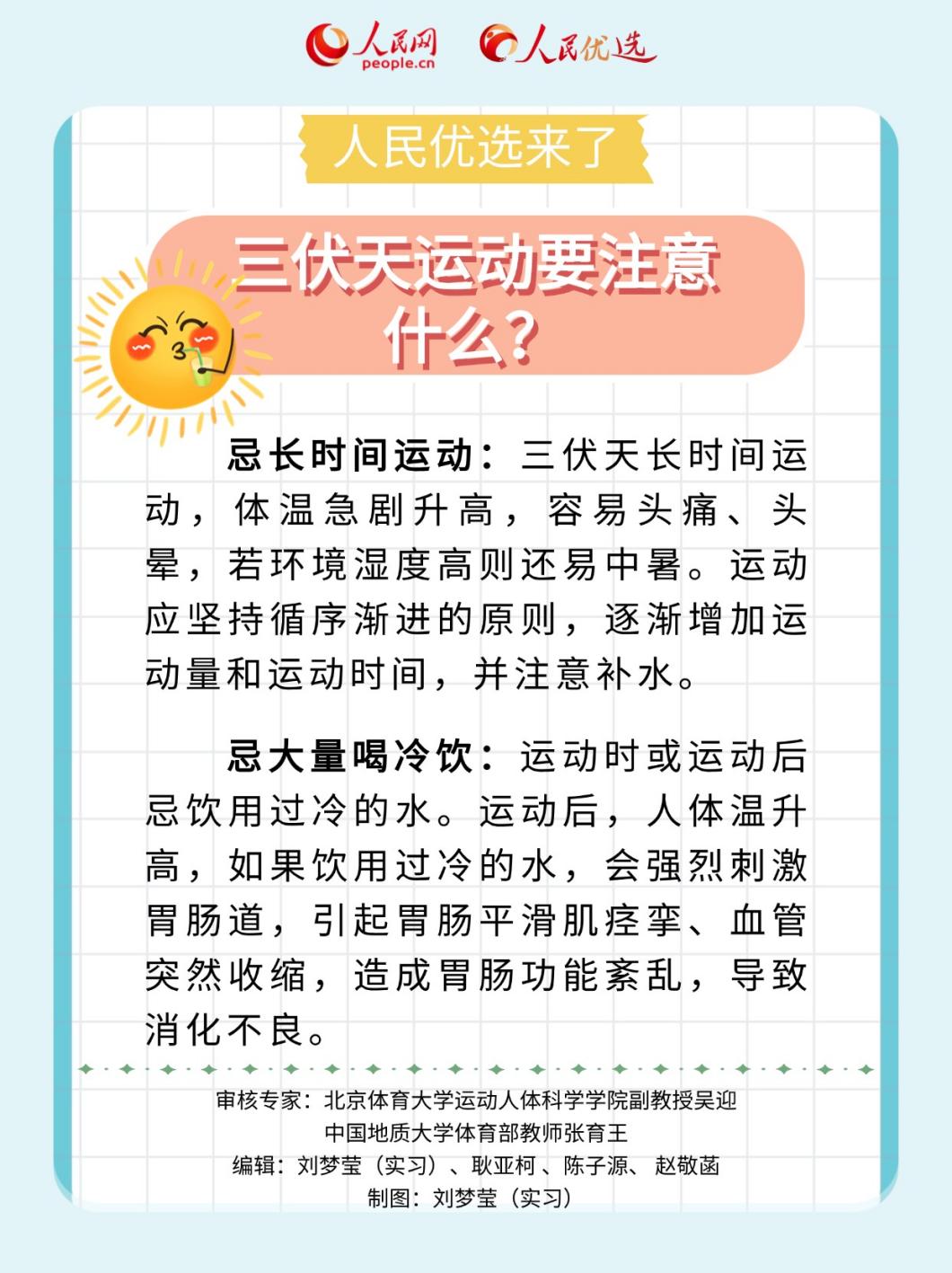 人民優(yōu)選來了——本期指導(dǎo)專家:北京體育大學(xué)運(yùn)動(dòng)人體科學(xué)學(xué)院副教授吳迎,中國(guó)地質(zhì)大學(xué)體育部教師張育王。