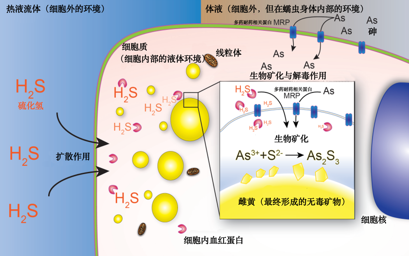 2025年8月,中國(guó)科學(xué)院海洋研究所的研究團(tuán)隊(duì)在《PLOS生物學(xué)》(PLOS Biology)上發(fā)表了一項(xiàng)驚人發(fā)現(xiàn):赫斯帕拉爾文氏蠕蟲通過一種前所未有的“以毒攻毒”機(jī)制,將兩種致命毒素——砷和硫化氫——結(jié)合成無(wú)毒的雌黃礦物,實(shí)現(xiàn)了生物界首個(gè)已知的解毒性生物礦化。