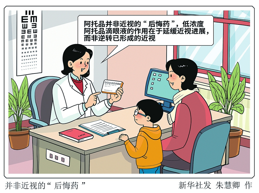 廣西醫(yī)科大學第一附屬醫(yī)院眼科副主任醫(yī)師黎霞介紹,阿托品是一種睫狀肌麻痹劑,以往常在驗光檢查中作為散瞳藥使用。近年研究發(fā)現(xiàn),低濃度阿托品滴眼液具有延緩近視進展的作用,其機制可能與抑制眼軸增長、調節(jié)視網膜信號傳導有關,“相關藥品受到關注,反映出公眾對近視防控的迫切需求”。
