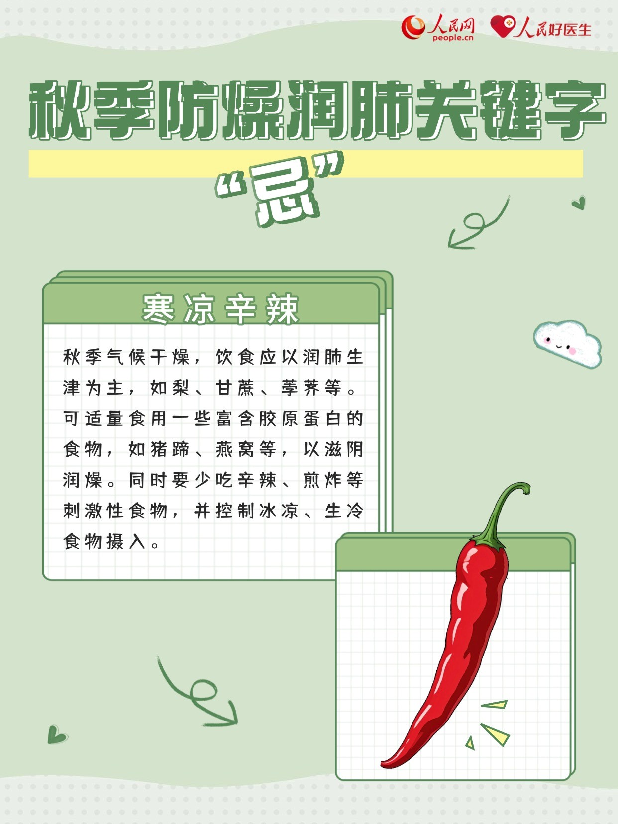俗話說:“春生夏長,秋收冬藏?!鼻锾焓鞘斋@的季節(jié),天氣由熱轉(zhuǎn)涼,人體也進(jìn)入一個(gè)調(diào)整和適應(yīng)的階段??諝庵械乃譁p少,容易讓人感覺口干、皮膚干。從中醫(yī)角度看,秋季五行屬金,在氣候上與“燥”對(duì)應(yīng),在五臟上與“肺”對(duì)應(yīng),人體最易感受的就是秋燥。此時(shí),秋季養(yǎng)生以防秋燥、潤肺為重點(diǎn),為即將到來的冬天打好基礎(chǔ)。因此,牢記秋季養(yǎng)肺的“三忌三食”,尤為重要。