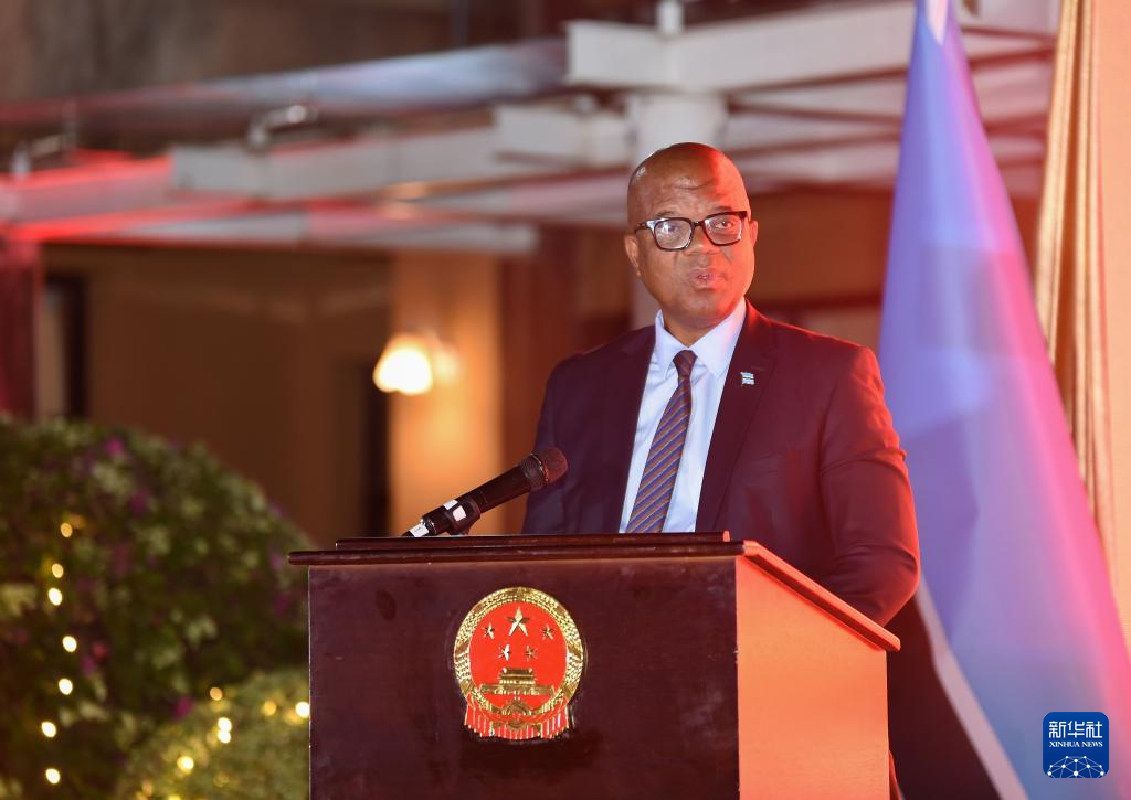 9月25日,在博茨瓦納首都哈博羅內(nèi),博茨瓦納總統(tǒng)事務部長莫瓦薩在慶祝中華人民共和國成立76周年招待會上講話。新華社發(fā)(策基索·特巴洛攝)