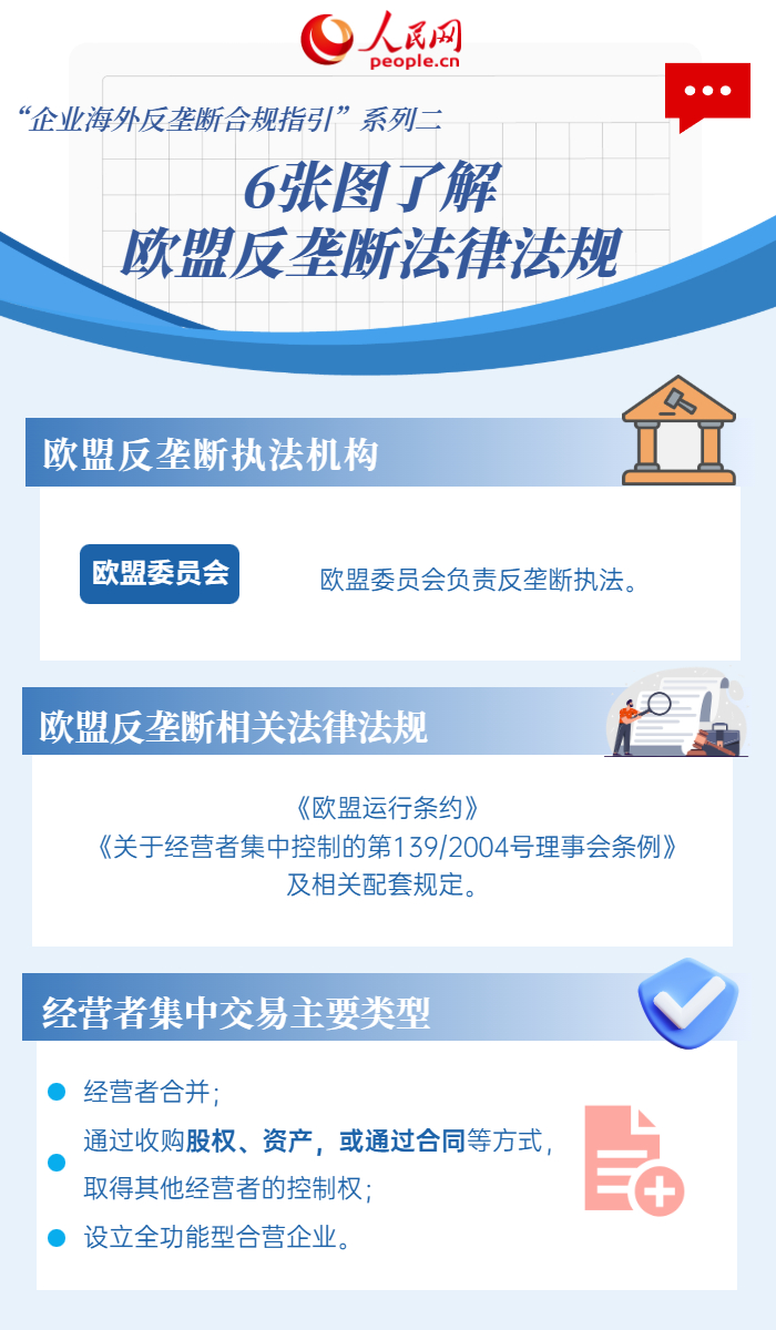 近年來,我國企業(yè)國際化進(jìn)程加速,越來越多企業(yè)“走出去”參與國際競爭。針對企業(yè)比較關(guān)心的海外反壟斷合規(guī)問題,人民網(wǎng)聯(lián)合市場監(jiān)管總局反壟斷二司特推出“企業(yè)海外反壟斷合規(guī)指引”系列圖解,按國別市場分類帶您了解境外反壟斷法律制度,為廣大企業(yè)經(jīng)營者提供參考。