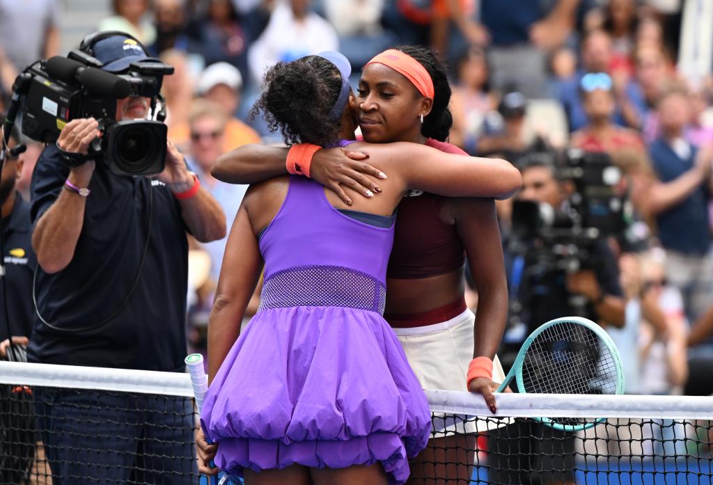 9月1日,高芙(右)和大坂直美在比賽后擁抱致意。新華社記者 李睿 攝