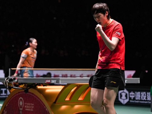女單比賽王曼昱迎戰(zhàn)張本美和。王曼昱將自己護(hù)臺面積大、移動范圍廣、反手斜線威脅大的特點(diǎn)充分發(fā)揮,限制了張本美和的速度,從而為中國隊(duì)再下三局,總比分6:0領(lǐng)先。