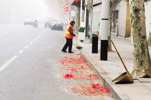 45歲的環(huán)衛(wèi)工張秀生告訴筆者,“越是節(jié)假日,越不能停歇,把路面收拾得干干凈凈,老百姓走著舒坦,我心里也高興?!边@幾天風大天冷,張師傅卻干得特別有勁。不到2個小時,城區(qū)健康中街周邊的垃圾全部清理干凈?!白蠲Φ臅r候就是下午四五點鐘,路上的垃圾數(shù)量明顯增加。”張師傅說,有時他一直忙到晚上6點才回家,第二天早上,不到4點他就從床上爬起來了。據(jù)悉,春節(jié)期間,城區(qū)的環(huán)衛(wèi)工人基本全部在崗,許多環(huán)衛(wèi)工人甚至提前到崗清掃街道,確保市容整潔。張師傅希望市民們春節(jié)燃放鞭炮時不僅要注意安全,還要保護環(huán)境衛(wèi)生。