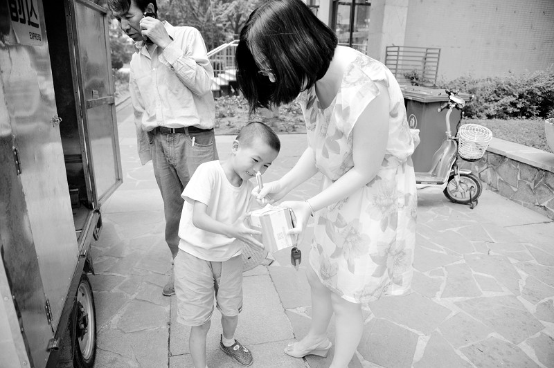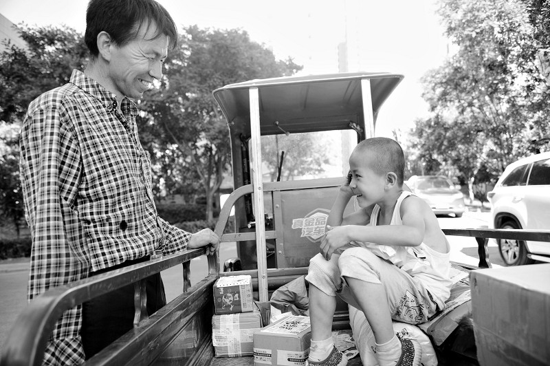 小志偉跟著爸爸一起送快遞,負責(zé)打電話通知客戶。 |