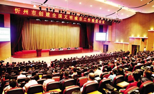 圖為忻州市創(chuàng)建全國文明城市工作推進會議會場。趙菁 攝