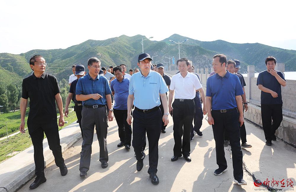 在滹沱河原平紅旗大橋流域,朱曉東實地察看河道徑寬,了解全年徑流量,聽取流域周邊小水網(wǎng)建設、生產(chǎn)生活取用水情況。在觀上水庫,朱曉東察看壩基內(nèi)外現(xiàn)狀,聽取壩基加固程序匯報,檢查紡織袋、救生衣等防汛物資儲備,察看備用電源、泄洪道閘門定期檢修情況。在雙乳山水庫,朱曉東了解庫區(qū)防洪準備和庫區(qū)運行、農(nóng)業(yè)灌溉、景區(qū)補水等相關情況。