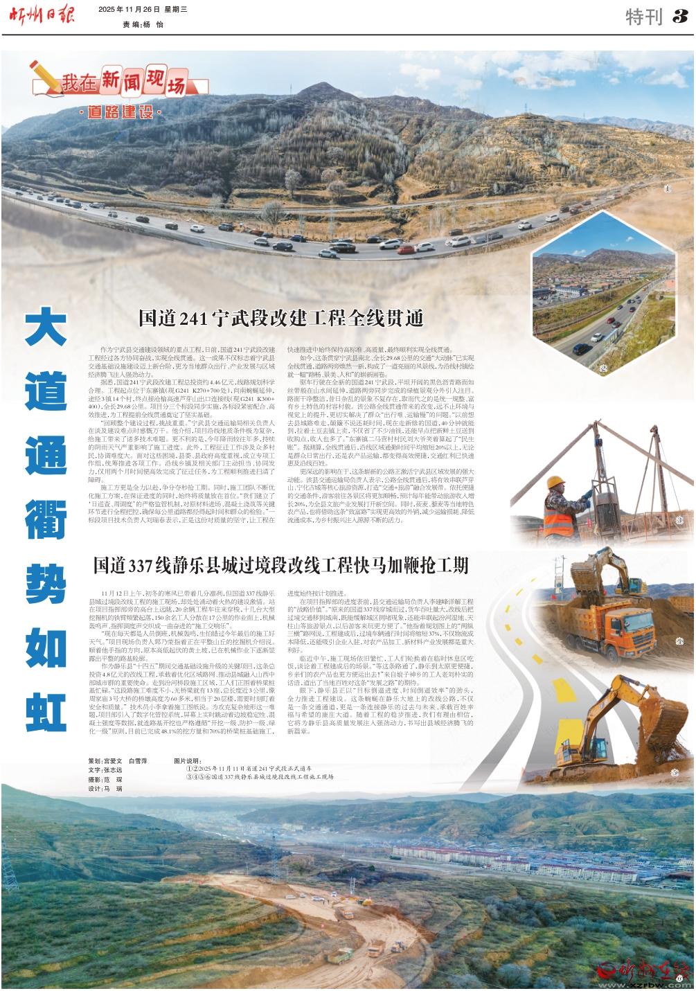 眼下,靜樂縣正以“目標倒逼進度、時間倒逼效率”的勁頭,全力推進工程建設(shè)。這條蜿蜒在靜樂大地上的改線公路,不僅是一條交通通道,更是一條連接靜樂的過去與未來、承載百姓幸福與希望的康莊大道。隨著工程的穩(wěn)步推進,我們有理由相信,它將為靜樂縣高質(zhì)量發(fā)展注入強勁動力,書寫出縣域經(jīng)濟騰飛的新篇章。