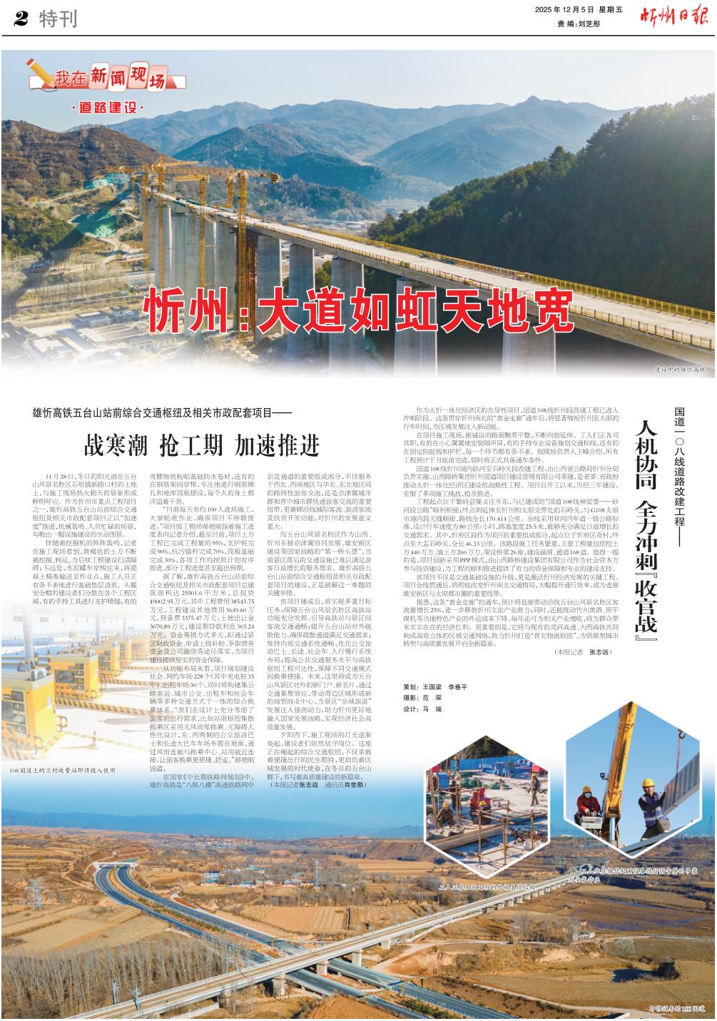 作為太忻一體化經(jīng)濟(jì)區(qū)的先導(dǎo)性項(xiàng)目,國(guó)道108線忻州段改建工程已進(jìn)入沖刺階段。這條貫穿忻州南北的“黃金走廊”通車后,將顯著縮短忻州至太原的行車時(shí)間,為區(qū)域發(fā)展注入新動(dòng)能。