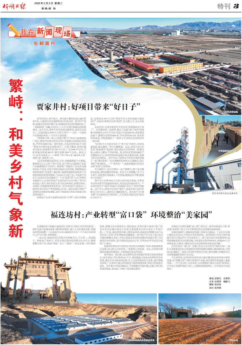 兩個總計花費1544萬元的大項目基本落地,為賈家井村帶來的不僅是眼前的變化,更是長遠發(fā)展的底氣。產(chǎn)業(yè)項目筑牢了“富民”的基石,環(huán)境項目夯實了“宜居”的根基。這個冬天,賈家井村沒有“貓冬”,而是在重大項目相繼完工的節(jié)點上,滿懷信心地眺望春天。堅實的產(chǎn)業(yè)“硬支撐”與完善的村居“新肌體”,正共同托舉起村民們更加紅火的日子。