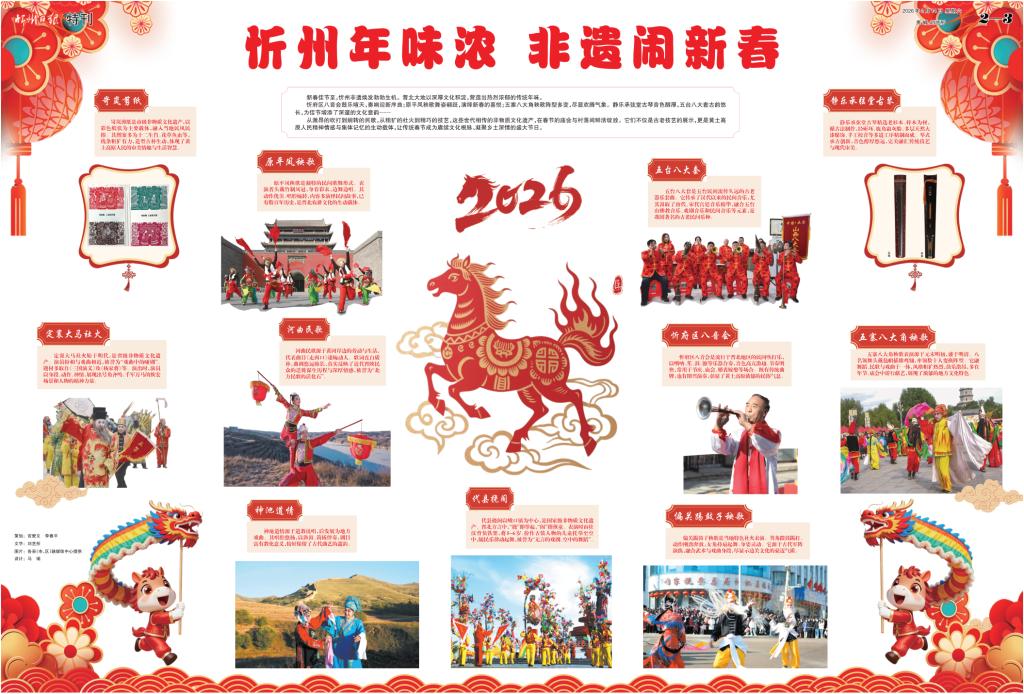 新春佳節(jié)至,忻州非遺煥發(fā)勃勃生機(jī)。晉北大地以深厚文化積淀,營(yíng)造出熱烈濃郁的傳統(tǒng)年味。 忻府區(qū)八音會(huì)鼓樂(lè)喧天,奏響迎新序曲;原平鳳秧歌舞姿翩躚,演繹新春的喜悅;五寨八大角秧歌陣型多變,盡顯歡騰氣象。靜樂(lè)承弦堂古琴音色醇厚,五臺(tái)八大套古韻悠長(zhǎng),為佳節(jié)增添了深邃的文化意韻…… 從激昂的吹打到婉轉(zhuǎn)的民歌,從粗獷的社火到精巧的技藝,這些世代相傳的非物質(zhì)文化遺產(chǎn),在春節(jié)的廟會(huì)與村落間鮮活綻放。它們不僅是古老技藝的展示,更是黃土高原人民精神情感與集體記憶的生動(dòng)載體,讓傳統(tǒng)春節(jié)成為賡續(xù)文化根脈、凝聚鄉(xiāng)土深情的盛大節(jié)日。 岢嵐剪紙 岢嵐剪紙是市級(jí)非物質(zhì)文化遺產(chǎn),以彩色紙張為主要載體,融入當(dāng)?shù)孛耧L(fēng)民俗。其圖案多為十二生肖、花草魚(yú)蟲(chóng)等,線條粗獷有力,造型古樸生動(dòng),體現(xiàn)了黃土高原人民的審美情趣與生活智慧。 定襄大馬社火 定襄大馬社火始于明代,是省級(jí)非物質(zhì)文化遺產(chǎn)。演員扮相與戲曲相近,被譽(yù)為“戲曲中的啞劇”。題材多取自《三國(guó)演義》及《楊家將》等。演出時(shí),演員以身段、動(dòng)作、神情,展現(xiàn)出號(hào)角齊鳴、千軍萬(wàn)馬的恢宏場(chǎng)景和人物的精神力量。 原平鳳秧歌 原平鳳秧歌是獨(dú)特的民間歌舞形式。表演者頭戴竹制鳳冠,身著彩衣,邊舞邊唱。其動(dòng)作優(yōu)美、唱腔婉轉(zhuǎn),內(nèi)容多演繹民間故事,已有數(shù)百年歷史,是晉北農(nóng)耕文化的生動(dòng)載體。 河曲民歌 河曲民歌源于黃河岸邊的勞動(dòng)與生活,代表曲目《走西口》凄婉動(dòng)人。歌詞直白質(zhì)樸,曲調(diào)悠遠(yuǎn)綿長(zhǎng),真實(shí)反映了近代晉陜民眾的遷徙謀生歷程與深厚情感,被譽(yù)為“北方民歌的活化石”。 神池道情 神池道情源于道教說(shuō)唱,后發(fā)展為地方戲曲。其唱腔悠揚(yáng),以漁鼓、簡(jiǎn)板伴奏,劇目富有教化意義,較好保留了古代曲藝的遺韻。 代縣撓閣 代縣撓閣以峨口鎮(zhèn)為中心,是國(guó)家級(jí)非物質(zhì)文化遺產(chǎn)。晉北方言中,“撓”即舉起,“閣”指孩童。表演時(shí)由壯漢背負(fù)鐵架,將5-6歲、扮作古裝人物的兒童托舉至空中,隨民樂(lè)律動(dòng)起舞,被譽(yù)為“無(wú)言的戲劇、空中的舞蹈”。 五臺(tái)八大套是五臺(tái)民間流傳久遠(yuǎn)的古老器樂(lè)套曲。它傳承了漢代以來(lái)的民間音樂(lè),尤其汲取了唐代、宋代宮廷音樂(lè)精華,融合五臺(tái)山佛教音樂(lè)、戲劇音樂(lè)和民間音樂(lè)等元素,是我國(guó)著名的古老民間樂(lè)種。 忻府區(qū)八音會(huì) 忻府區(qū)八音會(huì)是流行于晉北地區(qū)的民間吹打樂(lè),以嗩吶、笙、鼓、镲等樂(lè)器合奏,音色高亢激越、節(jié)奏明快,常用于節(jié)慶、廟會(huì)、婚喪嫁娶等場(chǎng)合。既有傳統(tǒng)曲牌,也有即興演奏,彰顯了黃土高原濃郁的民俗氣息。 偏關(guān)踢鼓子秧歌 偏關(guān)踢鼓子秧歌是當(dāng)?shù)靥厣缁鸨硌?。男角蹬鼓踢打、?dòng)作剛勁奔放,女角持扇起舞、身姿靈動(dòng)。它源于古代軍陣演練,融合武術(shù)與戲曲身段,盡顯示邊關(guān)文化的豪邁氣質(zhì)。 靜樂(lè)承弦堂古琴 靜樂(lè)承弦堂古琴精選老杉木、梓木為材,循古法制作,經(jīng)斫坯、鹿角霜灰胎、多層天然大漆髹飾、手工校音等多道工序精制而成。琴式承古創(chuàng)新,音色醇厚悠遠(yuǎn),完美融匯傳統(tǒng)技藝與現(xiàn)代審美。 五寨八大角秧歌 五寨八大角秧歌表演源于元末明初,盛于明清。八名領(lǐng)舞頭戴氈帽插雄雞翎,率領(lǐng)數(shù)十人變換陣型。它融舞蹈、民歌與戲曲于一體,風(fēng)格粗獷熱烈,鼓樂(lè)激昂,多在年節(jié)、廟會(huì)中游行獻(xiàn)藝,展現(xiàn)了濃郁的地方文化特色。 策劃:宮愛(ài)文 李春平 文字:劉芝彤 圖片:各縣(市、區(qū))融媒體中心提供 設(shè)計(jì):馬瑞 (責(zé)任編輯:盧相?。?br> |