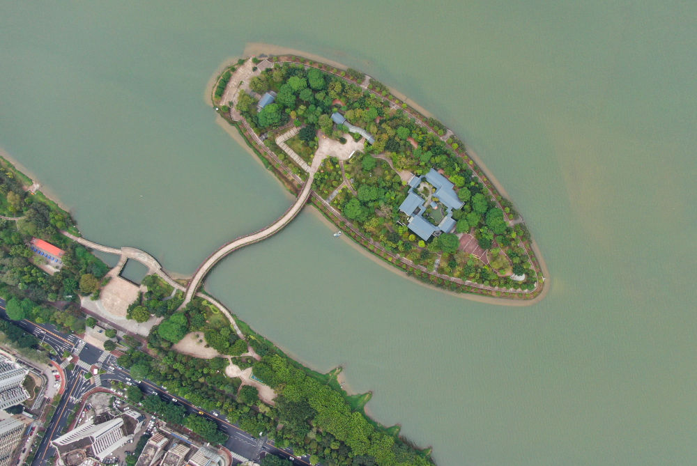 2021年4月8日拍攝的江心島書院所在的廣東清遠(yuǎn)清城區(qū)北江的江心島(無(wú)人機(jī)照片)。新華社記者 鄧華 攝