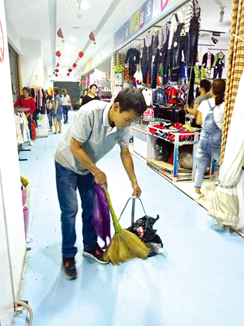 整個(gè)云河商場只有一層,共60多家商戶,衛(wèi)生清潔一天3次,工作量雖然不是很大,卻也不輕松。記者見到老馬時(shí),他正在做商場關(guān)門前的最后一次清掃。不時(shí)有商戶喊老馬過去收紙箱和塑料袋,老馬加快了手里的動作。“商場是公共場所,管理也挺嚴(yán)格的,我得隨時(shí)注意看哪里有了垃圾,或是公共設(shè)施出了問題,要不人來人往怕出事。干凈整潔的環(huán)境代表著商場的形象,也能讓顧客購物時(shí)有個(gè)好心情,這也是我工作的價(jià)值吧。”老馬坦言,有的人衛(wèi)生習(xí)慣特別不好。商場里童裝生意最為火爆,有個(gè)別帶孩子的家長直接讓孩子隨地大小便,不僅弄臟了環(huán)境也作了不良示范。老馬希望通過創(chuàng)衛(wèi),大家愛護(hù)環(huán)境衛(wèi)生的意識得到提高,這樣他也可以輕松點(diǎn)了。(王菲)