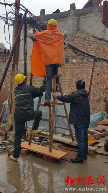 “這么大的雨,還要上桿接線,固定表箱,你們真不容易……”站在屋檐下的忻州城區(qū)新建北路東一巷的居民們看著冒著大雨搶修線路移動(dòng)表箱渾身濕透的供電搶修人員發(fā)出感慨之言。