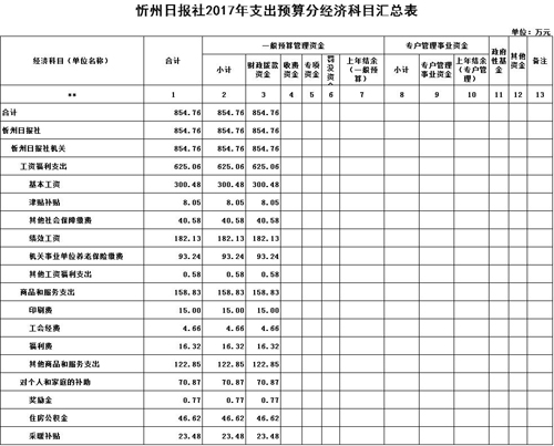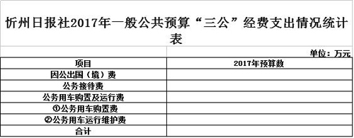 忻州日報社2017年度部門預算及“三公”經(jīng)費預算公開情況