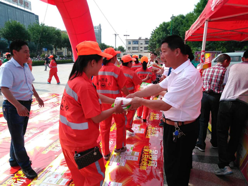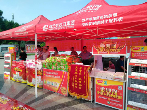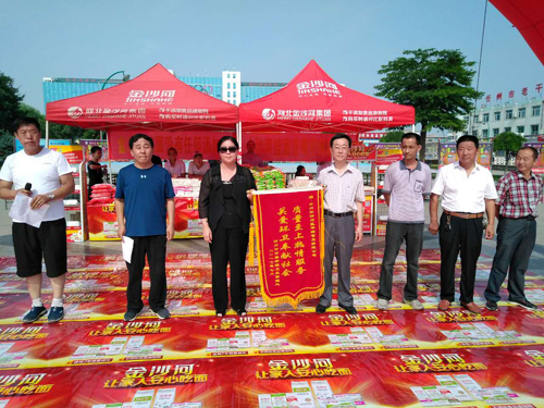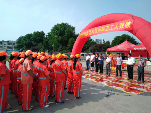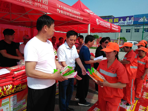 本網訊 7月16日上午,忻府區(qū)華琳食品有限公司在體育廣場舉辦“金沙河集團向忻州環(huán)衛(wèi)工人致敬”的慰問活動。向忻州約1300名環(huán)衛(wèi)工人捐贈“金沙河”牌掛面、刀削面等食品,捐贈價值達上萬元。