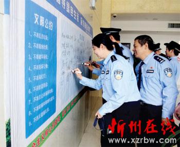 本報訊 為進一步提升廣大民警、輔警創(chuàng)建文明城市的意識,近日忻府區(qū)公安局組織開展了以“倡導(dǎo)綠色生活、反對鋪張浪費、爭創(chuàng)文明城市”為主題的簽名承諾活動,局領(lǐng)導(dǎo)和全局民警、輔警參加了活動,鄭重地在簽名墻簽上姓名,紛紛表示要以此次活動為契機,從自身做起,將社會主義核心價值觀融入日常工作中,自覺踐行文明公約,積極參加志愿者活動,爭當(dāng)創(chuàng)建文明城市的先鋒,積極為創(chuàng)建文明城市貢獻力量。
