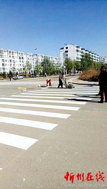 通過細致排查,交警大隊在廣惠園十字路口安裝紅綠燈一處,并在廣惠園與文淵路十字路口、通惠路與文淵路十字路口、通惠路與向陽街十字路口三處畫上了斑馬線,規(guī)范了城區(qū)通行秩序,為進一步保障道路安全打下了堅實的基礎。圖為工作人員正在道路上噴畫斑馬線張志遠攝