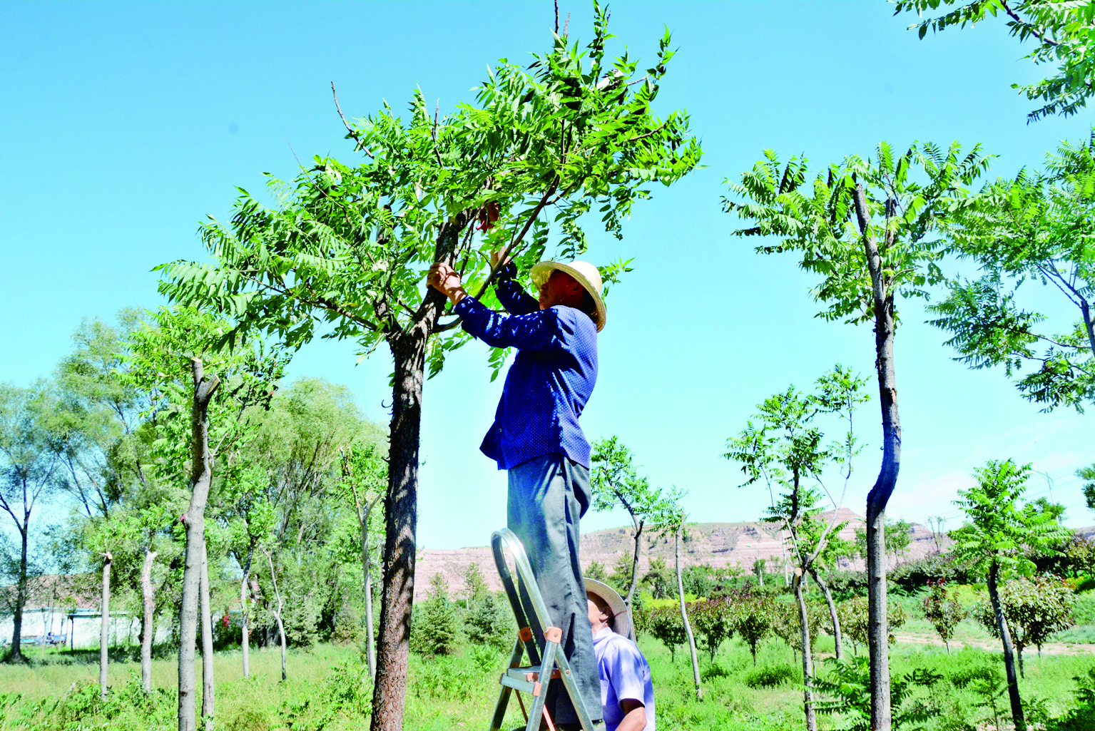 7月21日,河曲縣濱河生態(tài)濕地公園,園林工正在鋸掉火炬樹(shù)枯干枯枝,提升整體美觀度。該縣在高標(biāo)準(zhǔn)規(guī)劃、高質(zhì)量施工基礎(chǔ)上,強(qiáng)化綠植各項(xiàng)管護(hù)措施,硬是將一片“爛河灘”打造成450畝生態(tài)濕地公園,有效改善了縣城生態(tài)環(huán)境。 賈金理 攝 (責(zé)任編輯:盧相汀) |