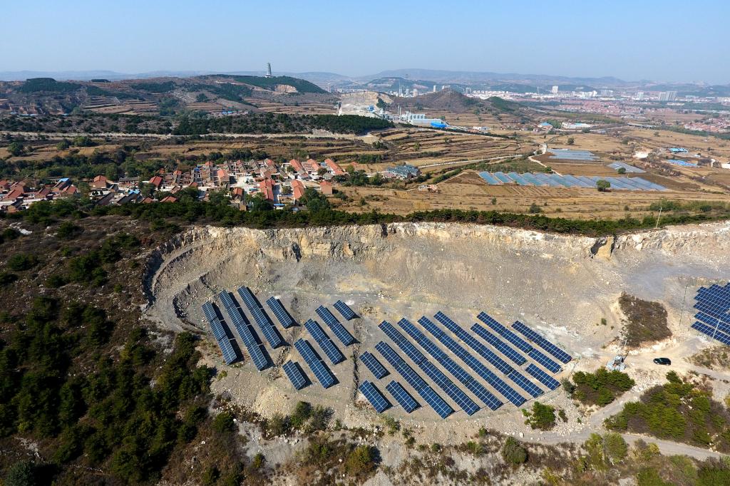 ↑這是壺關(guān)縣五龍山鄉(xiāng)水池村光伏扶貧電站(10月12日無(wú)人機(jī)拍攝)。