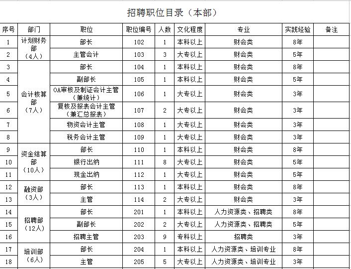 注:財務人員資格審查合格全部推薦上級財務部門領導面試并確定錄用。